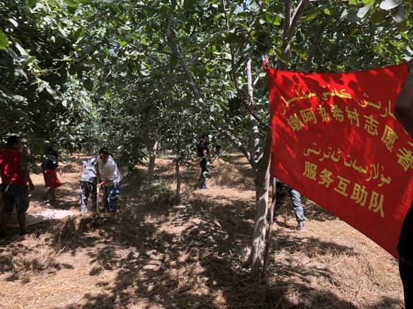 看着完成收割的麦子,村民布图尔荪·图尔荪托合提激动地说:“由于家里缺少劳动力,正在犯愁收麦子的事情,村里的互助队主动来我家帮忙,减轻了我的负担,感谢党,感谢党员志愿者,感谢工作队。”