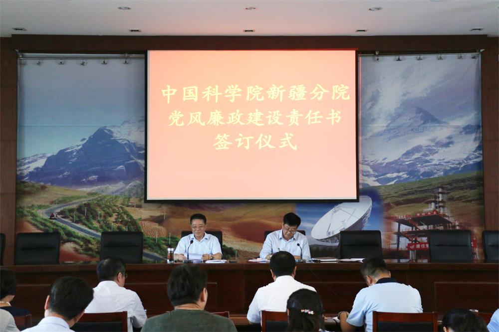 张小雷分别与新疆生地所所长雷加强、新疆理化所所长李晓、新疆天文台台长王娜以及分院直属单位负责人、分管机关职能部门负责人签订《中国科学院新疆分院反腐倡廉建设责任书》。牟振江分别与新疆生地所党委副书记董云社、新疆理化所党委书记蒋同海、新疆天文台党委书记孙正文以及分院直属单位党支部书记签订《中国科学院新疆分院党风廉政建设责任书》,与分管机关职能部门负责人签订《中国科学院新疆分院反腐倡廉建设责任书》。分院分管领导与分管机关各职能部门负责人签订了责任书。