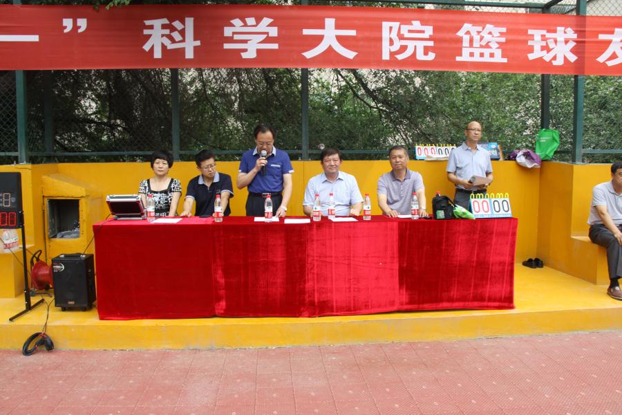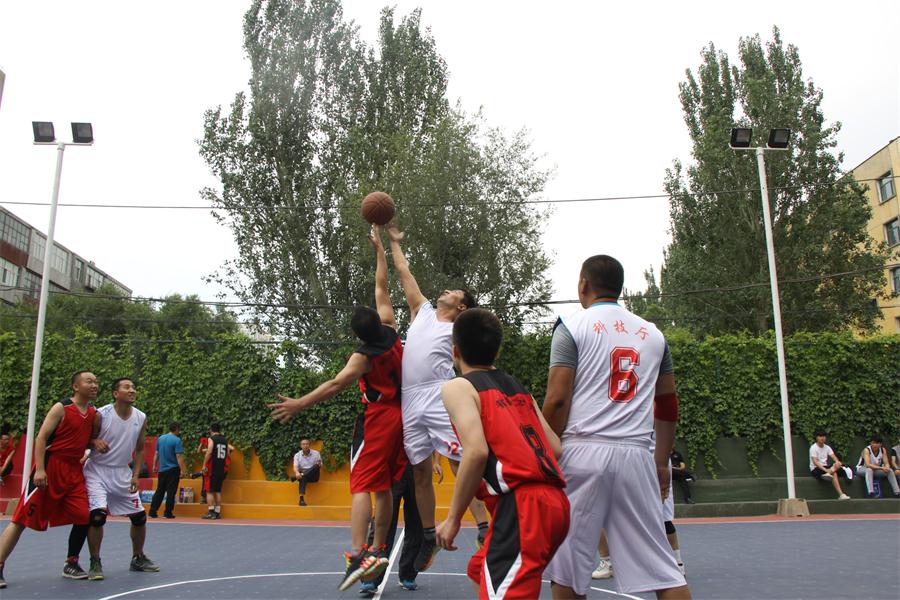 6月24日下午,在现场观众的热烈呐喊声中,新疆分院纪检组组长安尼瓦尔·买买提为比赛开球,用力地把篮球抛向了空中,“2015年迎‘七一’科学大院篮球友谊赛”正式拉开帷幕。