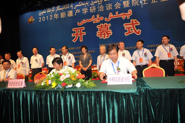7月10日,为落实全国科技创新大会精神,由新疆维吾尔自治区人民政府、新疆生产建设兵团主办的“2012年新疆产学研洽谈会暨院士企业行活动”启幕,中国科学院系统近20家研究机构50多名代表参加了本次活动。