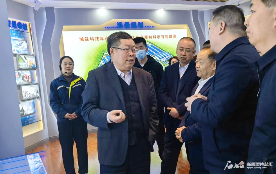 4月13日,“绿色能源与产业未来”院士新疆行活动走进哈密,中国科学院院士李灿(左二)及来自疆内外科研院所、企业等30余名代表走进企业开展调研。(摄影:谢慧变)