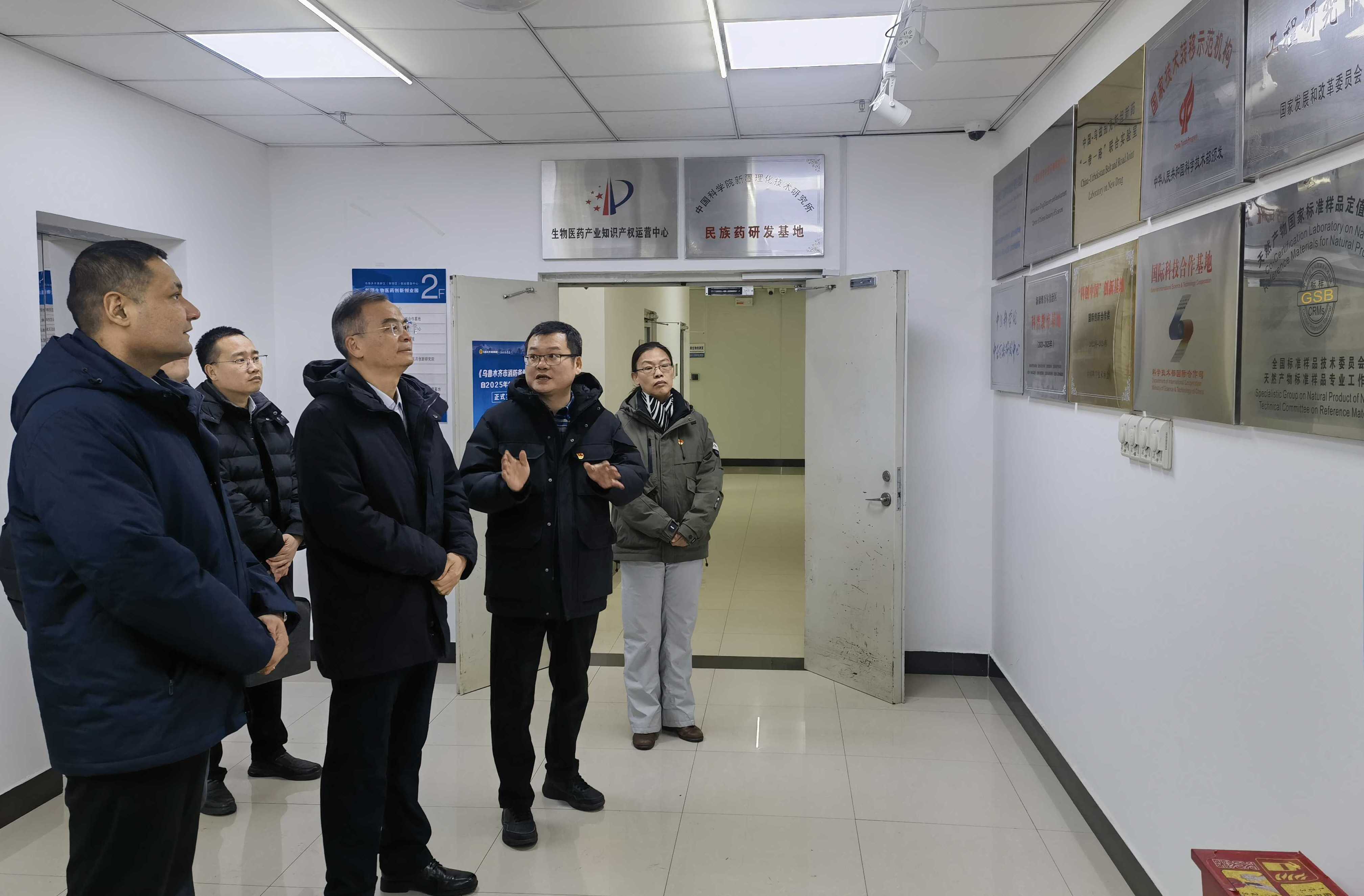 12月26日下午,新疆分院分党组书记、院长肖文交一行赴新疆民族药关键技术与工艺国家地方联合工程研究中心(以下简称“工程中心”)调研,将学习宣传贯彻党的二十届四中全会精神与推动民族药科技创新深度融合,深入科研一线送精神、察实情、谋发展。新疆理化所纪委书记桂东伟参加调研。