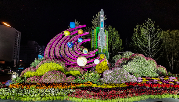 2020年10日3日,北京西单口的“科技强国”花坛。视觉中国供图