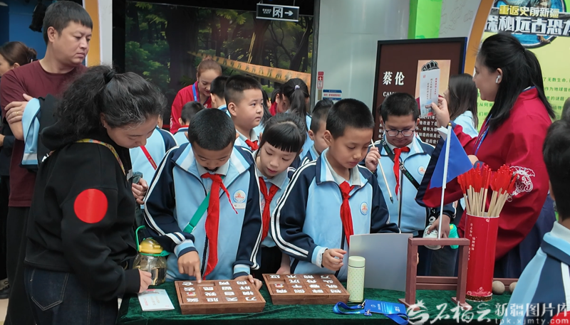 2025年全国科普月新疆主场活动现场,孩子们在“科技与现代文明同行”体验展上体验传统文化的魅力。石榴云/新疆日报记者 谢慧变摄