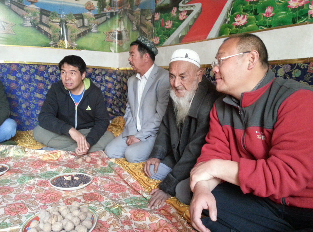 在老寿星家里,工作组成员与老人及家人一起盘腿坐上炕头,与老人亲切交谈,仔细询问生活及健康情况,并为老人送去了慰问品。工作组组长冯涛向老人简要介绍了自治区党委、政府开展“访民情、惠民生、聚民心”活动的目的和意义,以及工作组来到阿依玛克村后开展的惠民富民工作情况。看到老人生活温馨舒适,五世同堂,子孙孝顺,家庭和睦,他衷心祝愿老人健康幸福,并叮嘱家属要一如既往地关心照顾好老人,让老人能够快乐长寿。