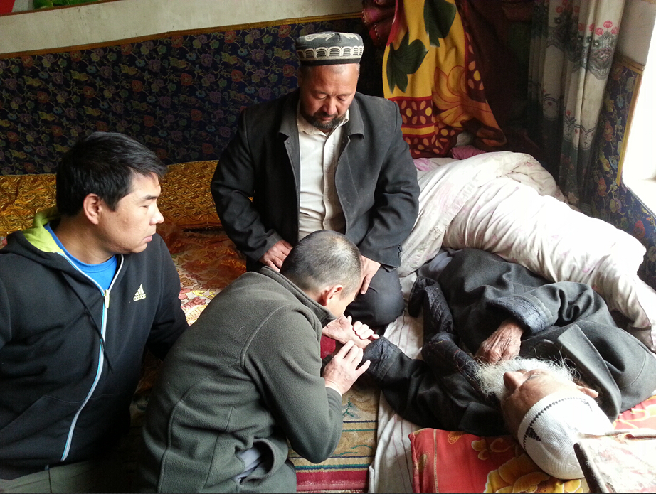 工作组成员新疆分院医务室医生朱光华还为来老人家把脉检查了身体。