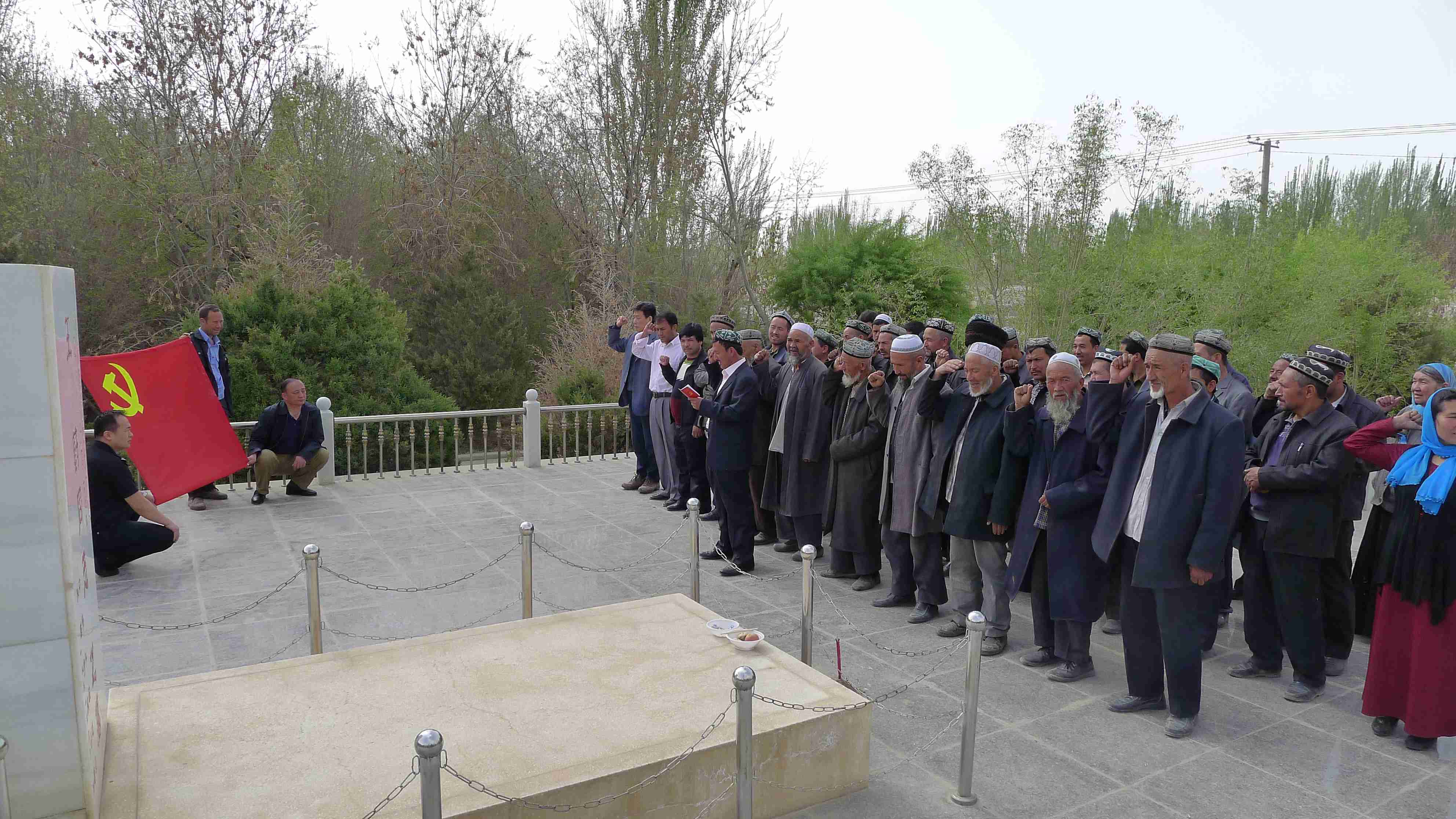 11时,全体党员在工作组总领队雷加强和村支部书记艾力·卡玛力的带领下首先来到喀拉喀什河渠首祭扫王蔚墓,深切缅怀扎根和田,将毕生精力奉献给和田水利事业的优秀共产党员、杰出的水利专家王蔚同志。随后全体党员及预备党员在王蔚墓前重温入党誓词,王蔚同志全心全意为人民服务、不图享受、不讲条件、不畏艰苦的精神深深地感动了每一位工作组成员和新老党员。工作组成员纷纷表示,“我们要以王蔚同志扎根边疆的奉献精神时刻提醒自己,学习他求真务实、艰苦奋斗的优良作风,学习他克己奉公,权为民所用、情为民所系、利为民所谋的高尚品格,住村期间用实际行动为巴西恰瓦格村各族人民谋利造福。”
