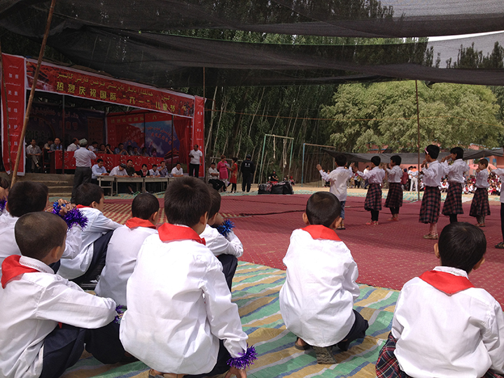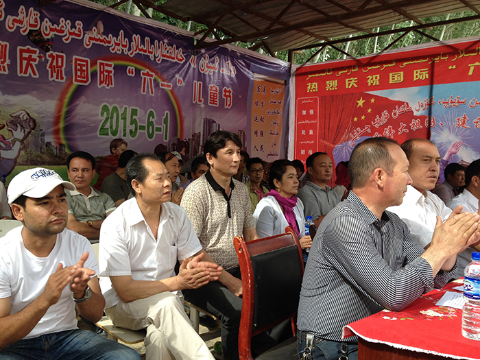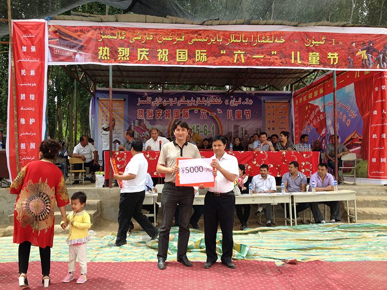 学生们以学校为单位,依次表演了舞蹈《小苹果》、《麦西来甫》、广播操表演等几十个节目,引来阵阵喝彩声。同时开展了绘画比赛等文体活动,学生们挥动着稚嫩的小手用缤纷的颜料绘出了心中最美的图案。工作组祝福孩子们节日快乐,观看了文体节目,还送去了5000元慰问金。中心小学党委书记马烽伟对工作组的到来表示感谢,希望工作组今后继续支持加汗巴格乡各小学的发展。