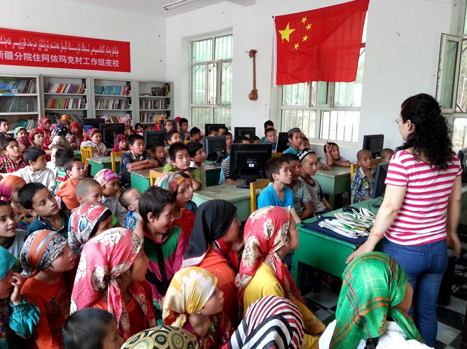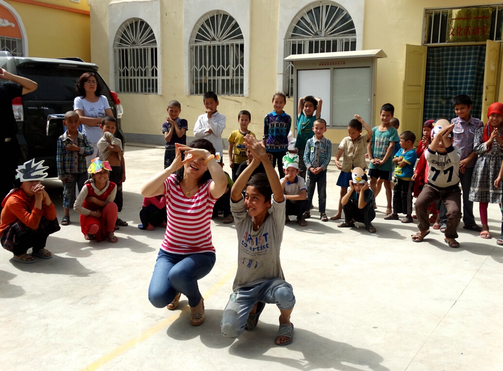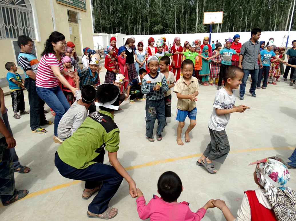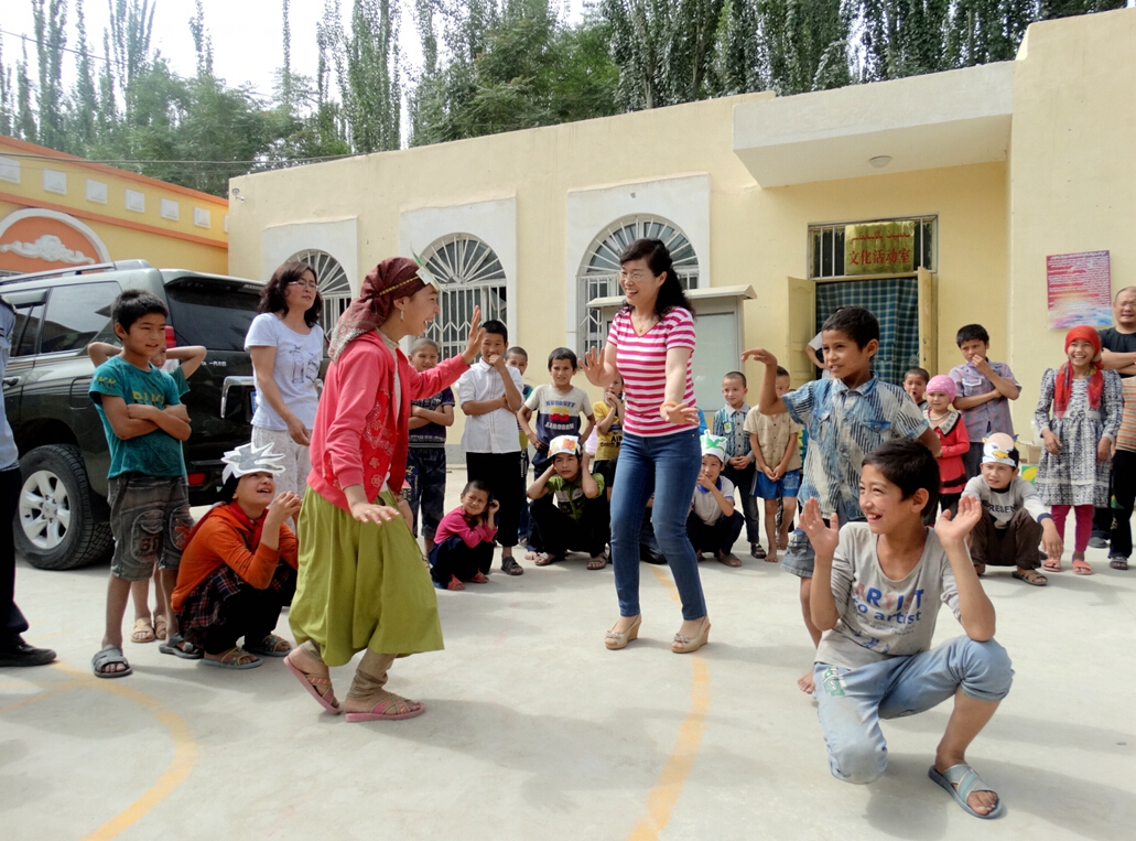 新疆分院幼儿园园长王荣兰为村里孩子上课