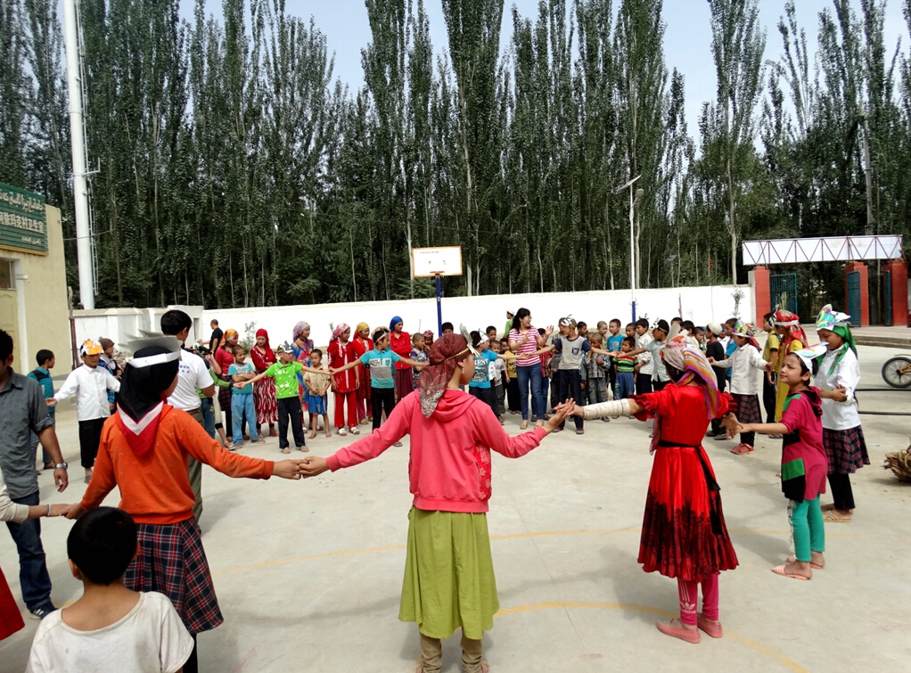 7月13日,天空湛蓝,阳光灿烂,新疆分院幼儿园园长王荣兰来到墨玉县加汗巴格乡阿依玛克村开展寓教于乐活动,孩子们穿着节日的盛装,用欢声笑语将村委会变成了欢乐的海洋,体验了城市幼儿园的欢乐小课堂。