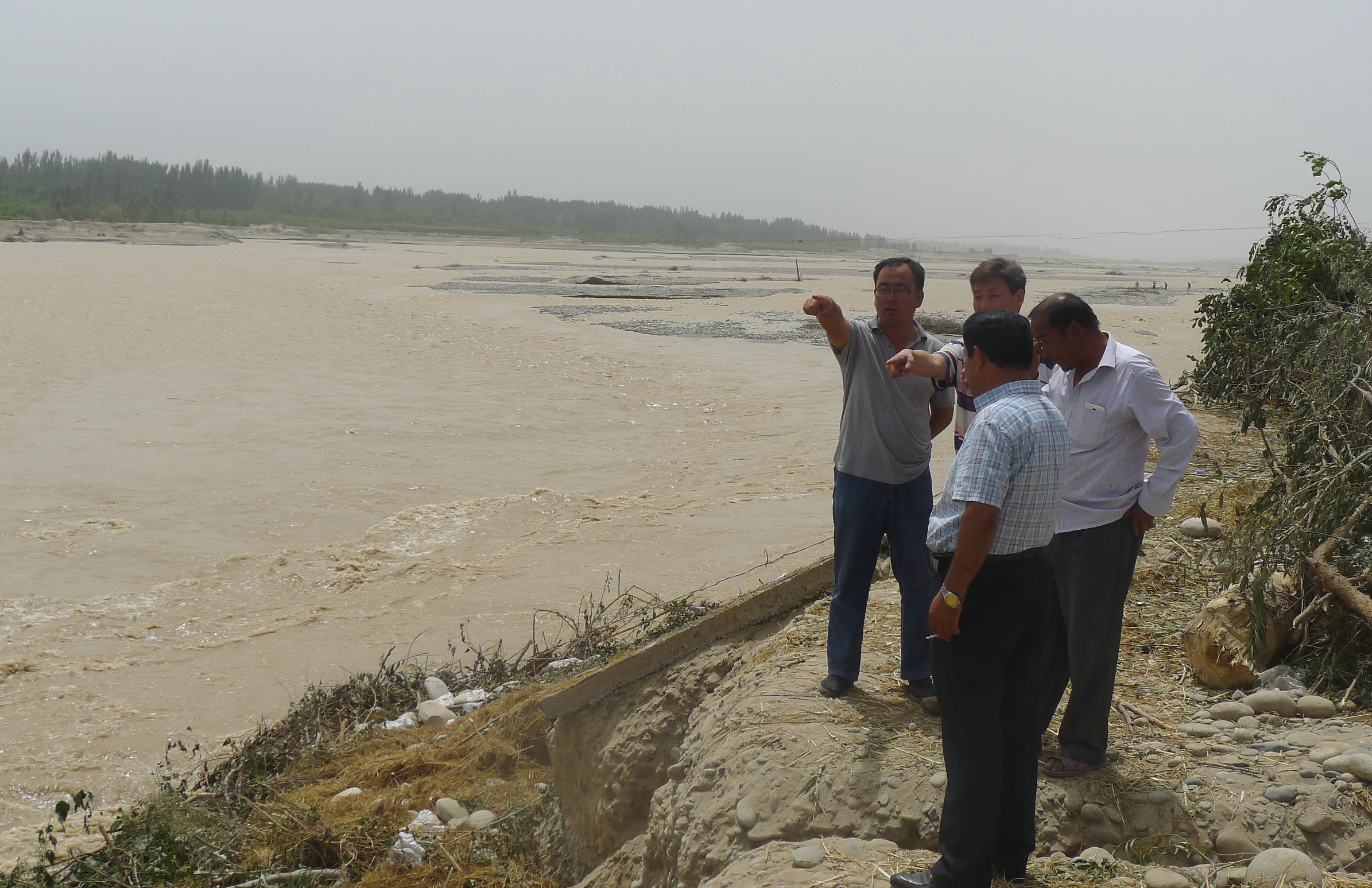8月3日,墨玉河临近加汗巴格乡的堤段发生险情,一旦洪水将坝体冲开,坝体后的村庄就将一片汪洋,后果不堪设想。在乡政府的坚强领导下,从全乡的6个村庄每天选派150多人参与抗洪救灾,一场群众性的防洪抗险行动发动了起来。工作组接到险情通知后,积极通过组内双语干部协调本村村干部和村民参与抗洪救灾。同时,迅速号召本村广大党员群众积极参加防汛抗洪抢险救灾,进而充分发挥战斗堡垒和先锋模范作用。