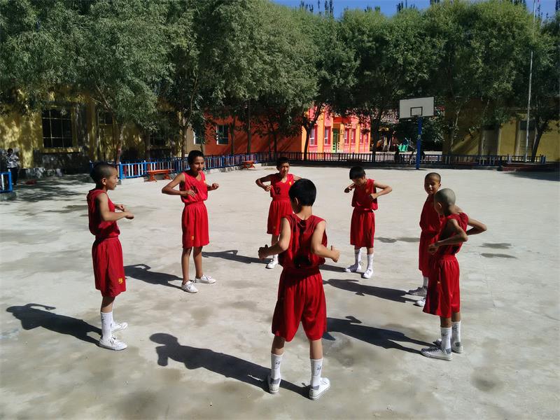 中科院新疆分院住村工作组住村后,发现村民大多不懂汉语或只懂很少的汉语,这给他们融入中国的主流社会带来很大的障碍。南疆的农村是一个相对封闭的社会环境,如何让南疆社会融入中国的主流社会,突破语言障碍是关键。因此新疆分院住村工作组根据自治区“访惠聚”办公室关于“发挥现代文化引领作用,开展形式多样的宣传教育活动,推进‘去极端化’的重要举措”的要求,同时也为进一步丰富广大少年儿童的课余时间,提高对篮球和汉语的兴趣,经过认真的筛选后于3月20日组建了少年“双语”篮球培训班。篮球班以维汉双语方式授课,每周六、日上午上课,暑期周一、三、五半天上课。以篮球基本功为主,以对抗为辅。零基础起步,学习运球,传球,上篮,投篮,体能,力量。这样既保证小朋友在训练过程中的安全性,也保证孩子能够在篮球训练中有所收获。