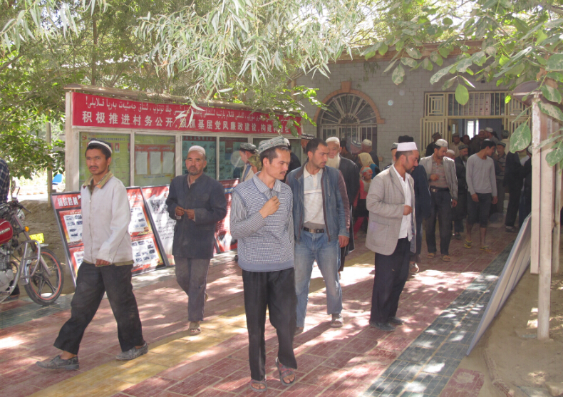 借9月2日阿依玛克村村民大会之机,工作组组织全体村民观看了宣传展板,并通知9月3日自行收看抗战胜利日阅兵实况。