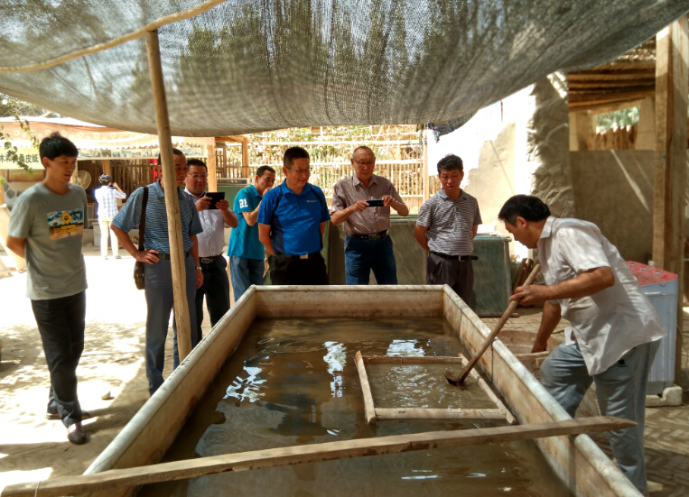 在墨玉县普恰克其乡布达村,工作组参观了和田托合提巴柯桑皮纸国际有限公司。世界非物质文化遗产桑皮纸第12代传人向工作组详细介绍和演示了桑皮纸的制作全过程。和田桑皮纸是我国在世界文件历史上贡献的四大发明之一,具史料记载,古代时期,维吾尔族和邻近国家的许多历史资料、文书都是写在桑皮纸上的,具有坚固不易腐烂,透墨性强等特点,广泛应用与书法和字画,具有很高的历史价值和经济效益。