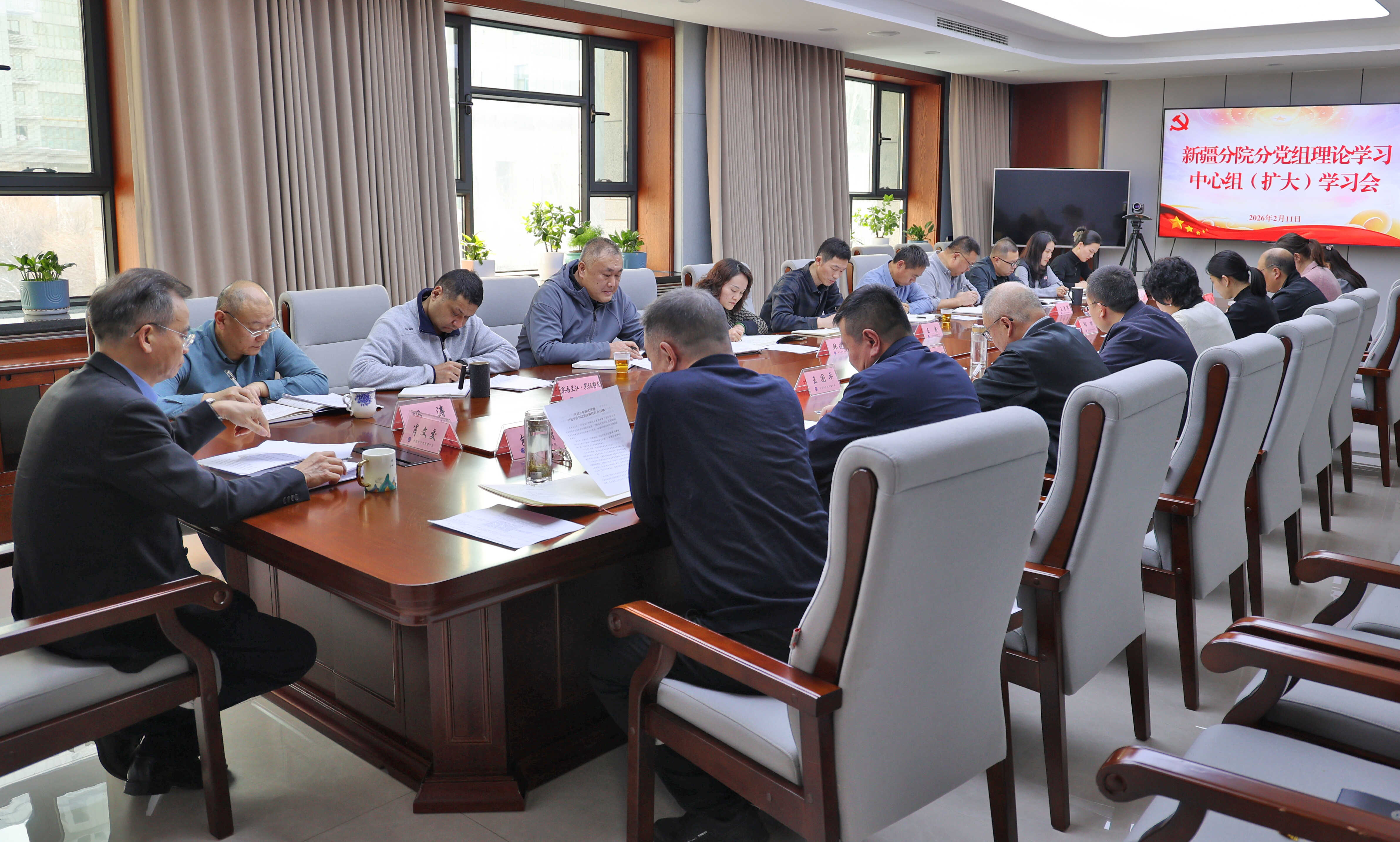 为深入学习贯彻中国科学院2026年度工作会议精神,2月11日,新疆分院分党组召开理论学习中心组(扩大)学习会。新疆分院分党组书记、院长肖文交主持会议,新疆分院领导班子成员及中层以上干部参加会议。
