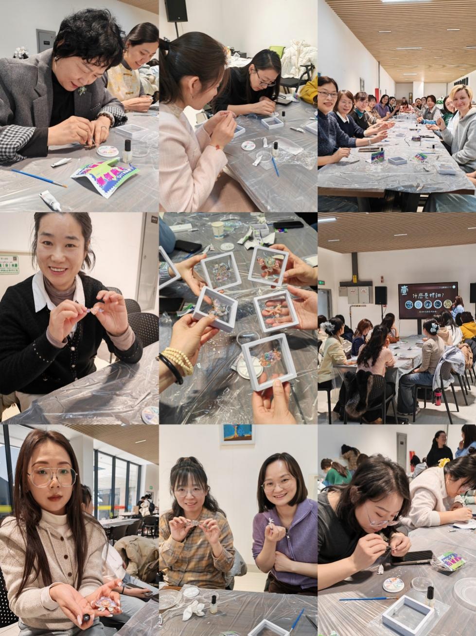 在非遗螺钿胸针制作体验环节,专业老师详细讲解螺钿工艺的历史渊源、技艺特点与文化内涵,展示打磨、镶嵌、定型等关键步骤。女职工们兴致盎然纷纷动手实践,将流光溢彩的贝壳薄片精心镶嵌成胸针,在创作中感受非遗技艺的精巧与传承。一件件兼具东方美学与个人创意的螺钿胸针陆续完成,现场洋溢着温馨愉悦、积极向上的氛围。