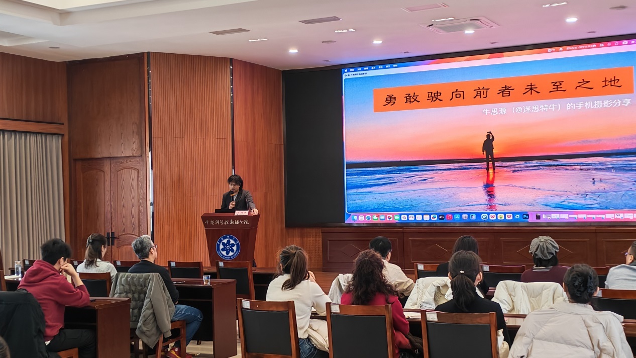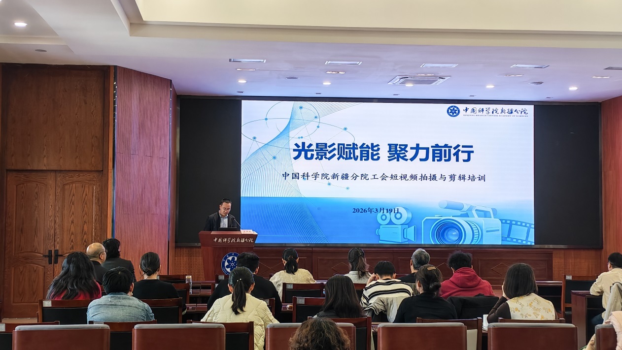 为丰富分院广大职工文化生活,提升职工新媒体素养与宣传能力,3月19日,中国科学院新疆分院工会以“光影赋能 聚力前行”为主题,举办短视频拍摄与剪辑专题培训。本次培训特邀知名摄影师、纪录片导演牛思源现场授课,分院机关及各研究所、台职工代表参加学习。