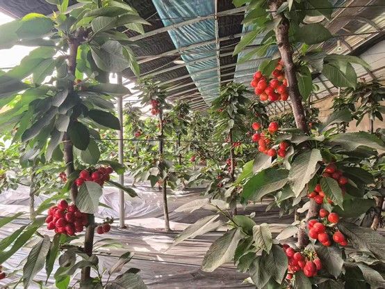 设施农业大棚里,饱满多汁的车厘子挂满枝头。技术员图然托合提·阿卜杜艾尼正忙着开展采摘前管护工作。他介绍,今年在中国科学院新疆生态与地理研究所正高级工程师王平的指导下,园区管理精细、气温条件适宜,车厘子产量稳定,果实糖度高、口感脆甜,品质十分出众。