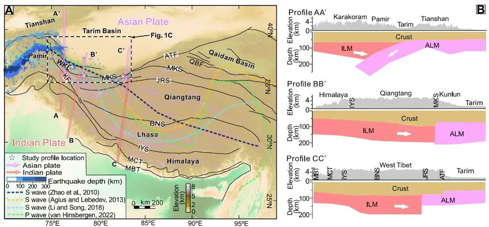 西昆仑下方印度与塔里木岩石圈碰撞汇聚图