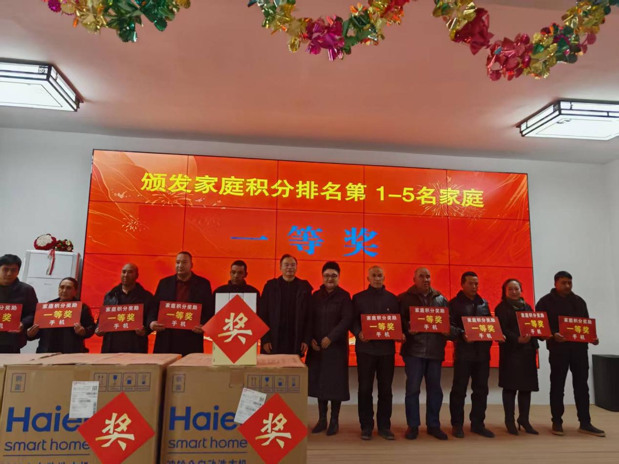 活动期间,肖文交出席了阿依玛克村和墩阿热希村联合举办的村级家庭积分奖励活动暨春节联欢会,为积分先进的家庭颁奖,他充分肯定了积分制在激发群众内生动力、提升乡村治理效能方面的积极作用,鼓励村民积极参与宜居宜业和美乡村建设,共同培育新时代文明乡风。联欢会上,村民、驻村干部和寒假返乡学生自编自演的节目精彩纷呈,展现了新疆分院近年来驻村帮扶成效和各民族手足相亲、守望相助的精神风貌,现场洋溢着喜庆祥和、团结奋进的节日气氛。