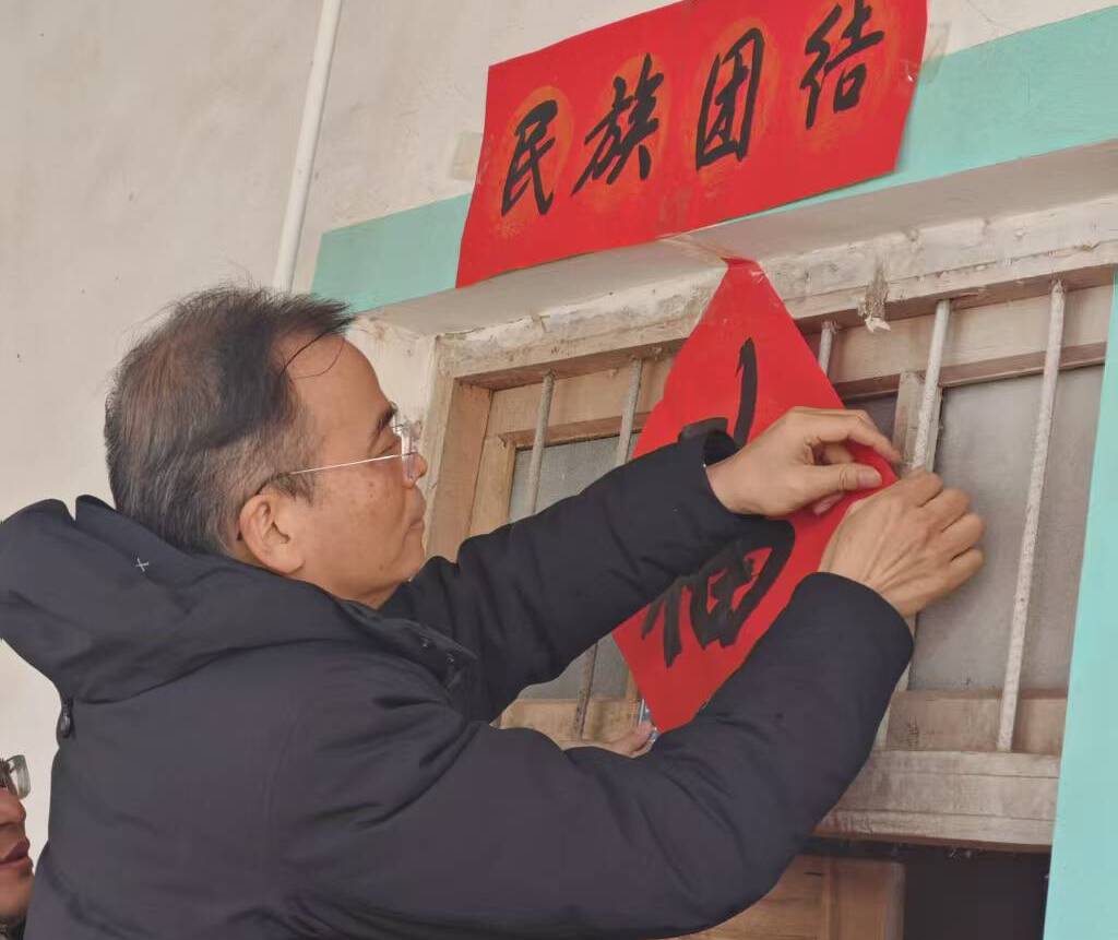 分院领导和驻村工作队深入结对亲戚和老党员、脱贫户家中走访,与大家拉家常,一同张贴民进新疆开明画院赠送的春联,送上新春祝福,现场温馨融洽。走访中,分院领导细致询问家庭收入、就业、教育、医疗等具体情况,倾听心声与期盼,结合近年来村里发生的翻天覆地变化,面对面宣讲党的二十届四中全会精神和自治区两会精神,重点解读乡村振兴、产业发展、民生保障等惠民政策,引导各族群众感党恩、听党话、跟党走,依靠勤劳双手创造更美好的生活。